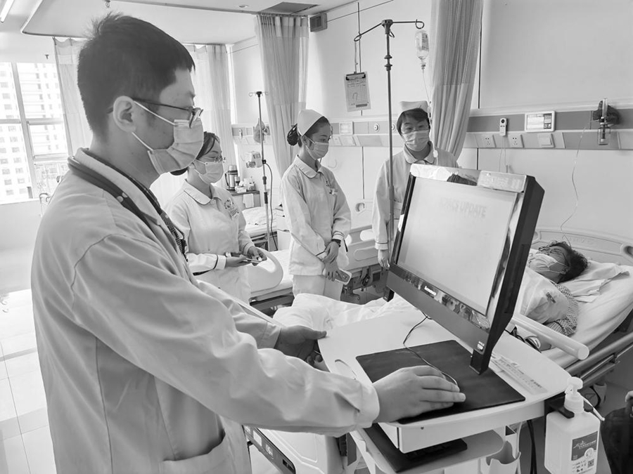 西寧市第一醫療集團總院醫生運用移動工作站為患者服務。