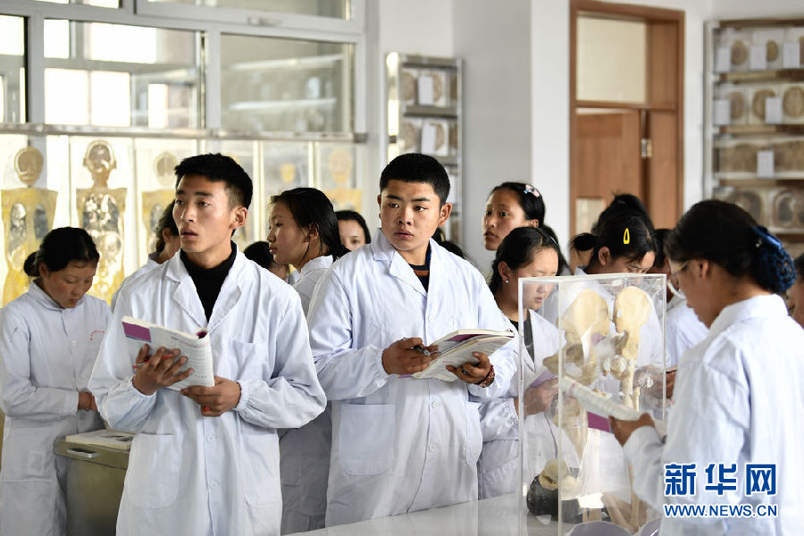 3月16日,在果洛藏族自治州職業技術學校,2020級護理專業學生在上課。新華社記者 張龍 攝