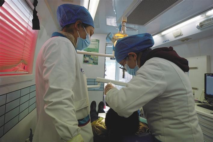 上午9點半,義診車輛到達沖賽康社區居委會附近,居民們有序排起了長隊,等待接受檢查。現場,醫務人員仔細為每一位居民檢查口腔,耐心細致地講解口腔保健、牙病預防等方面的口腔知識,并有針對性地為居民提出治療建議。