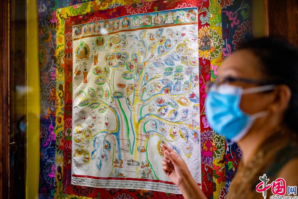 西藏藏醫(yī)藥大學(xué)開設(shè)特色鮮明的藏醫(yī)藥學(xué)唐卡教學(xué)課程。現(xiàn)有醫(yī)學(xué)唐卡由十七世紀(jì)藏醫(yī)藥大家第司.桑杰嘉措創(chuàng)建,距今已有300多年的歷史。醫(yī)學(xué)唐卡用歸納、總結(jié)的方式將藏醫(yī)藥典籍《四部醫(yī)典》的主要內(nèi)容以“樹喻”方式繪示出來。成書于1300多年的《四部醫(yī)典》是藏醫(yī)藥學(xué)理論的根本大典。包括總則醫(yī)典、論述醫(yī)典、秘訣醫(yī)典和后續(xù)醫(yī)典。內(nèi)容涵蓋藏醫(yī)生理學(xué)、病理學(xué)、診斷學(xué)、治療學(xué)等基礎(chǔ)理論,細(xì)化了婦科、兒科、內(nèi)科、外傷等學(xué)科,包含了解剖學(xué)、護(hù)理學(xué)、藥學(xué)等眾多學(xué)科。圖為學(xué)校老師在對醫(yī)學(xué)唐卡進(jìn)行講解。中國網(wǎng)記者 鄭亮攝