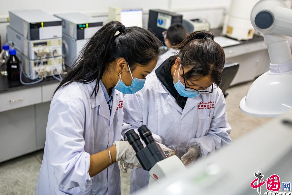 西藏藏醫(yī)藥大學(xué)目前擁有校內(nèi)實(shí)訓(xùn)室24個(gè)、附屬醫(yī)院1家,校外藏藥采認(rèn)藥實(shí)踐實(shí)訓(xùn)基地2個(gè)、非直屬附屬醫(yī)院2家、教學(xué)醫(yī)院7家、實(shí)習(xí)醫(yī)院11家、教學(xué)藥廠2家、實(shí)習(xí)藥廠1家,同時(shí)還擁有國家中醫(yī)藥管理局藏醫(yī)藥繼續(xù)教育培訓(xùn)基地、中醫(yī)藥優(yōu)勢特色教育(藏藥)培訓(xùn)基地和中央與地方共建藏醫(yī)特色療法實(shí)踐基地等重要教學(xué)基地。圖為學(xué)校學(xué)生在實(shí)驗(yàn)室中進(jìn)行藥物試驗(yàn)。中國網(wǎng)記者 鄭亮攝