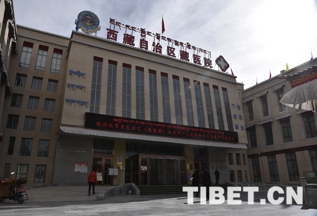 圖為11月29日,西藏自治區藏醫院門診樓祝賀“申遺”成功的字幕。