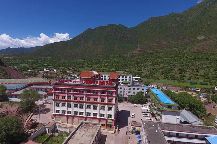 圖為山谷中的西藏昌都市日通藏醫院,內設藏醫藥浴室。