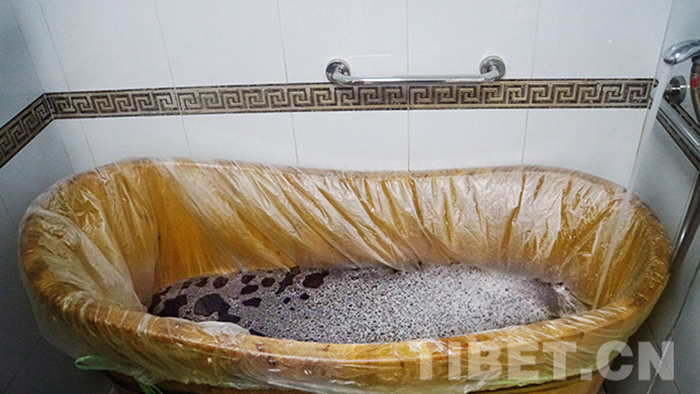 藏藥浴環境的準備工作也頗為講究,首先要將浴池消毒,開窗通風,而后關窗,熏燃藏香,調整室溫為20℃-25℃。