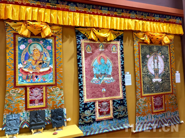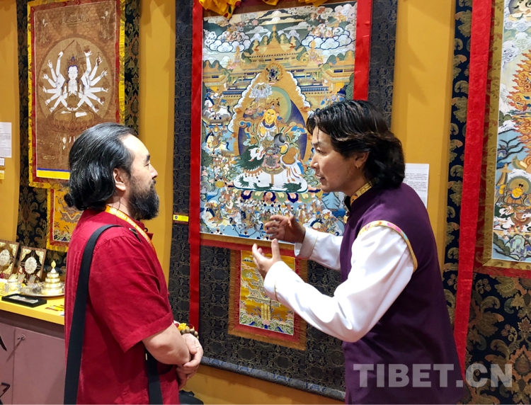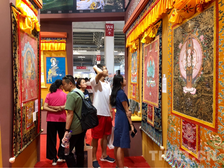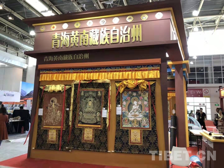 圖為青海省黃南藏族自治州非遺文化展區展出的熱貢唐卡 攝影:格桑嘉措