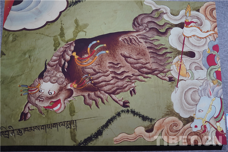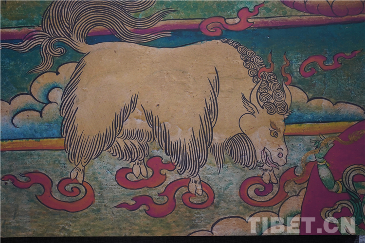 牦牛走進了藏族人民的生活,在幾千年的相處中,牦牛升華成任何一種事物和元素,完美融入了壁畫、唐卡、建筑等多種藝術創作中。