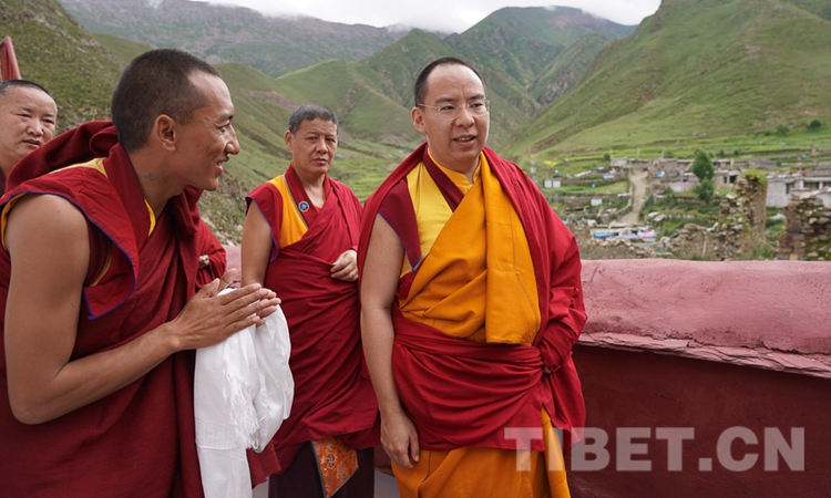 圖為十一世班禪在僧眾引領下走進熱堆寺 攝影:王淑