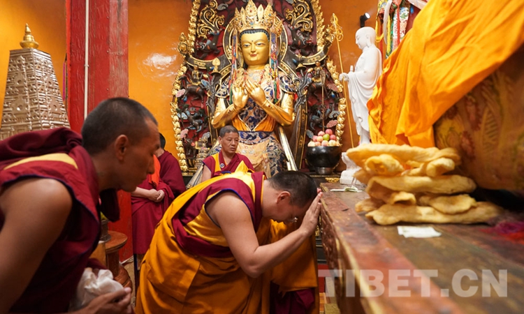 圖為十一世班禪在桑普寺禮佛 攝影:王淑