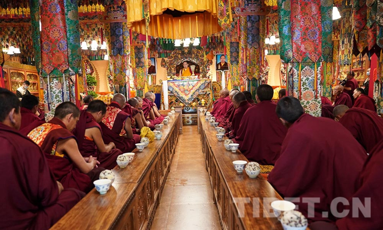圖為十一世班禪在桑普寺誦經祈愿 攝影:王淑