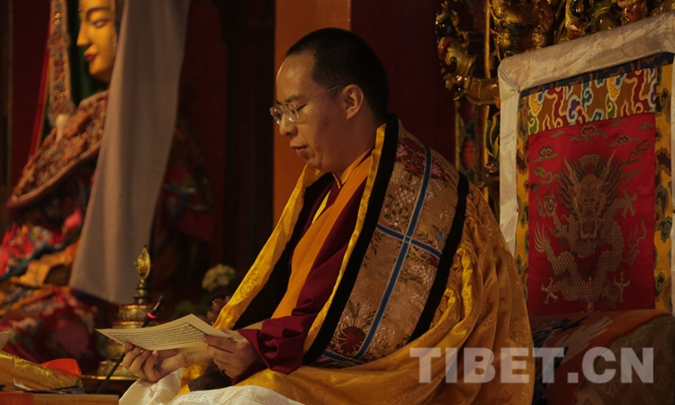 圖為十一世班禪在熱堆寺誦經祈愿 攝影:王淑