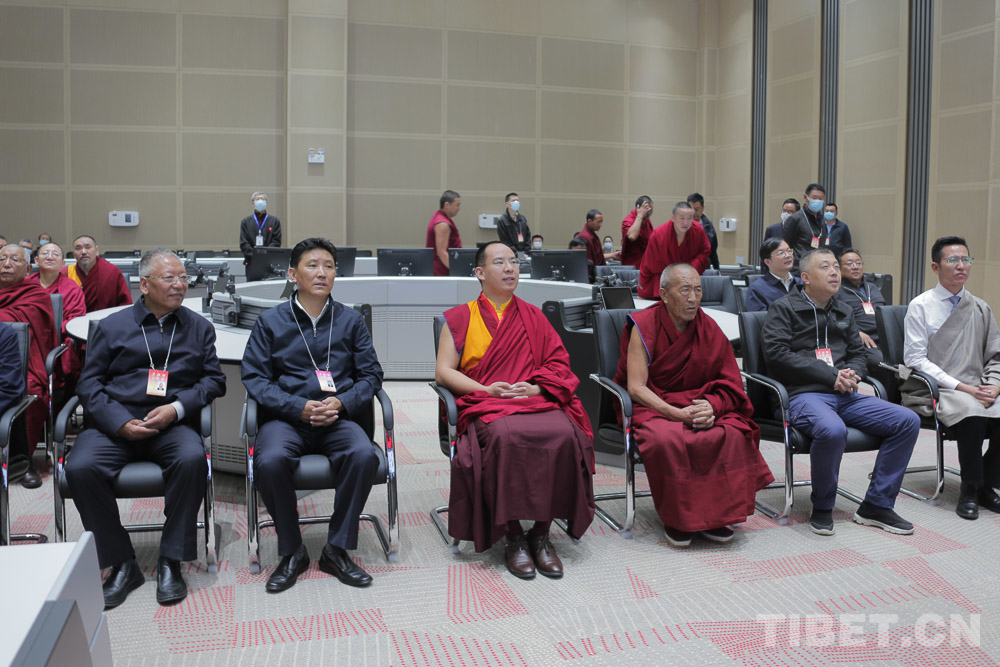圖為十一世班禪在控制中心內觀看宣傳片 攝影:王淑