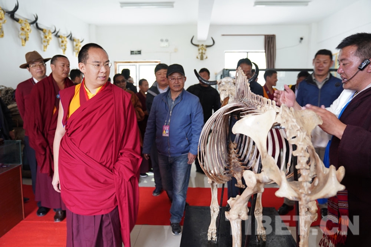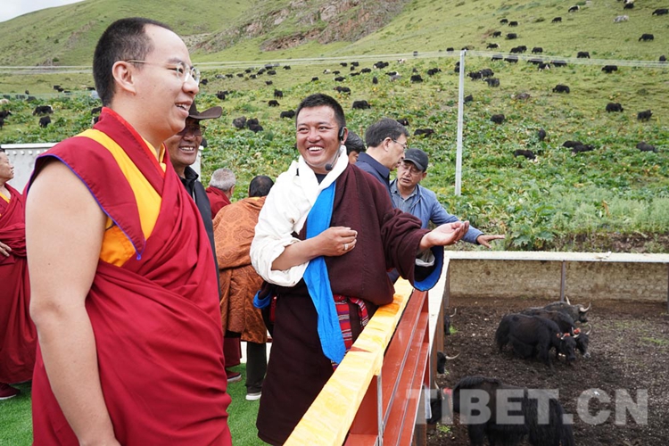 圖為十一世班禪聽(tīng)取西藏娘亞牦牛養(yǎng)殖產(chǎn)業(yè)發(fā)展有限公司工作人員對(duì)娘亞牦牛的介紹 攝影:王淑