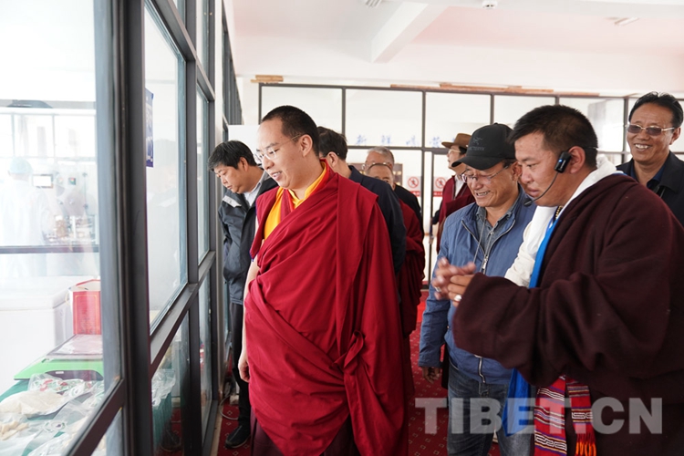 圖為十一世班禪觀摩西藏娘亞牦牛養(yǎng)殖產(chǎn)業(yè)發(fā)展有限公司畜產(chǎn)品的加工制作 攝影:王淑