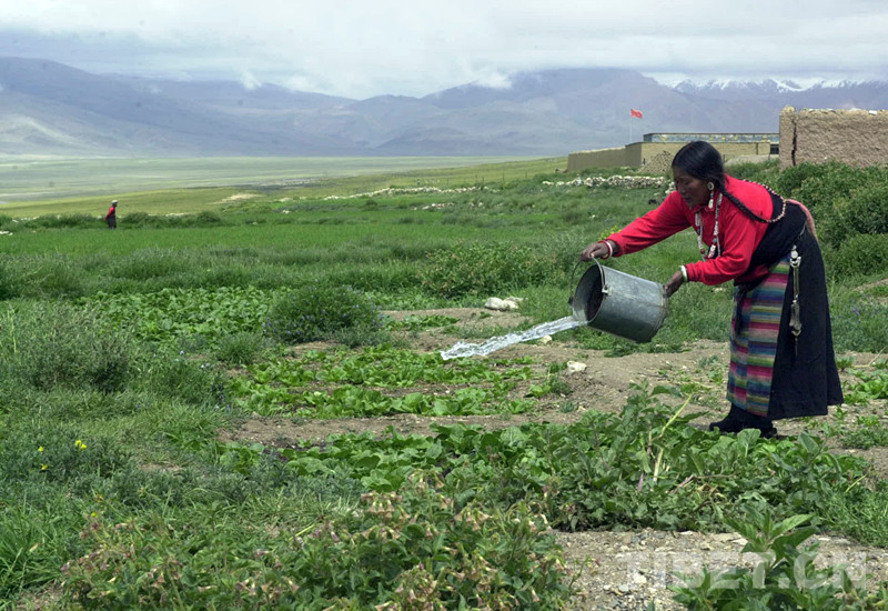 這是文部鄉南村一位藏族婦女在為農田澆水(唐召明2001年攝)