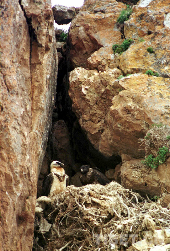 科考人員在科考中發現,在扎西多半島西北角突兀懸崖峭壁上有一個很大的胡兀鷲雜草屋,只見雌鳥飛出飛進,在給4個月大小的雛鳥喂食。這種頭頂和后頸為白色、頭頂周圍有一圈黑羽,長有胡須、腹部為褐色的胡兀鷲,體長1米多。
