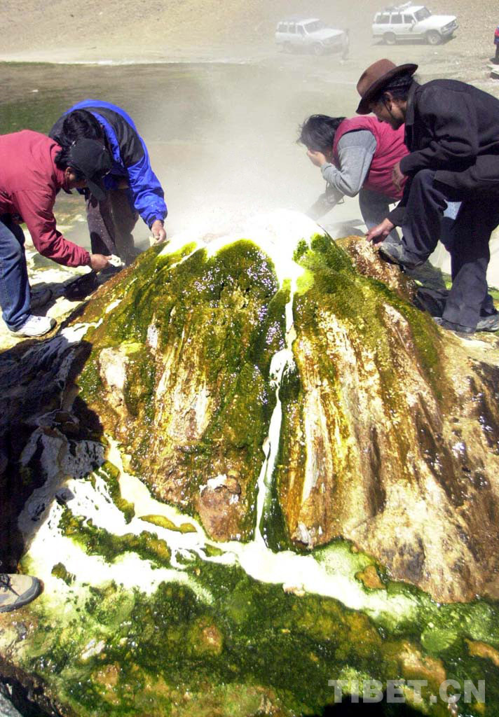 這是科考人員在申扎縣考察一眼地熱噴泉(唐召明2001年攝)