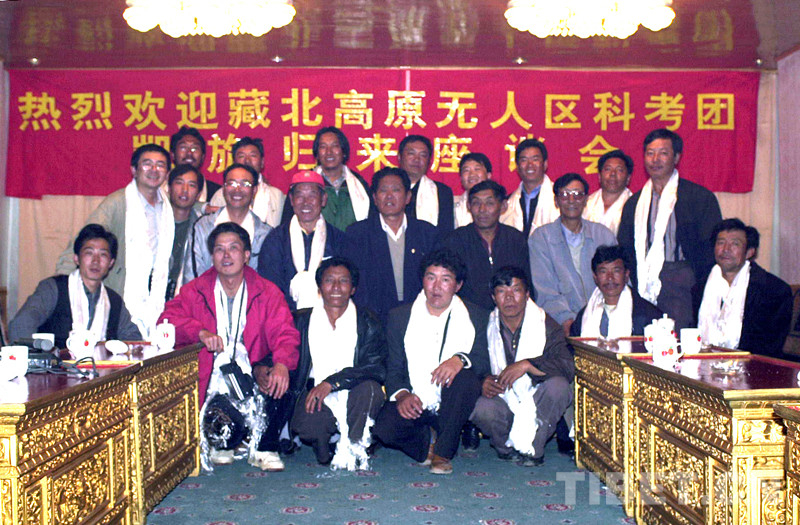 這是藏北高原無人區科考團人員,在完成2001年科考任務返回拉薩后合影留念(唐召明提供,2001年攝)