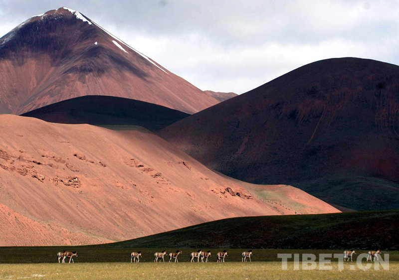 這是棲息在羌塘國家級自然保護區的國家一級保護動物藏野驢,在悠閑地排隊行走(唐召明2014年攝)