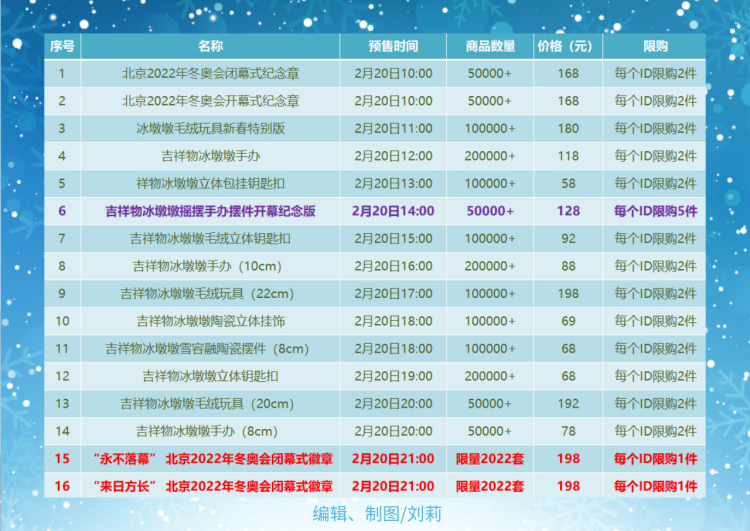 記者整理出了2月20日開放預售的所有特許商品的有關情況,此前遺憾沒能擁有冰墩墩的網友們,這次應該有望實現“一戶一墩”。