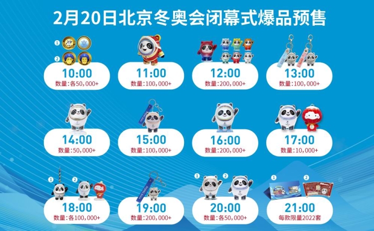 中國西藏網訊 北京冬奧會將于2月20日晚8:00舉行閉幕式。記者發現,奧林匹克官方旗艦店已經準備好了超過100萬件有關吉祥物冰墩墩、雪容融的特許商品。其中,最受關注的莫過于“永不落幕”和“來日方長”2套共4枚、各限量發售2022套的閉幕式紀念章。