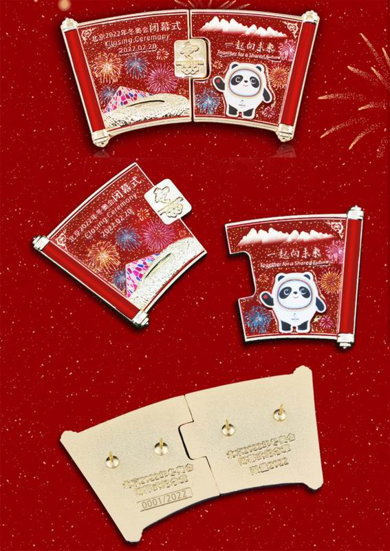 “來日方長” 北京2022年冬奧會閉幕式紀念徽章一套兩枚,拼合在一起就形成了一個漂亮的卷軸,寓意雖然北京冬奧會圓滿閉幕,但奧運精神薪火相傳,來日方長。徽章材質為鋅合金,采用釉面彩繪、立體浮雕、立體分層等工藝,每個產品均雕刻獨立序列號,高5cm、寬9.3cm、厚3mm,紙盒包裝,限量2022套。