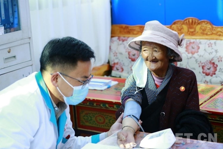 圖為亞東縣中心醫院醫護人員為老人測量血壓 圖源:帕里鎮四社區工作隊