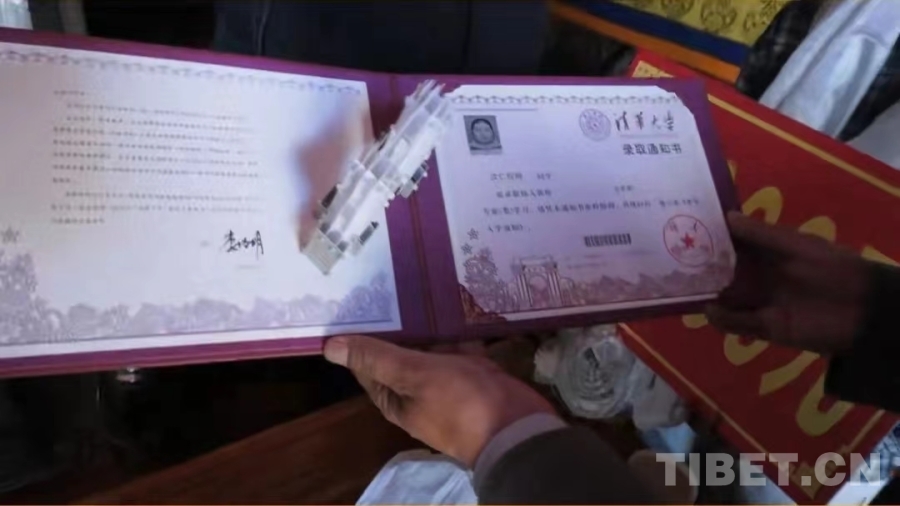 圖為次仁拉姆收到錄取通知書。