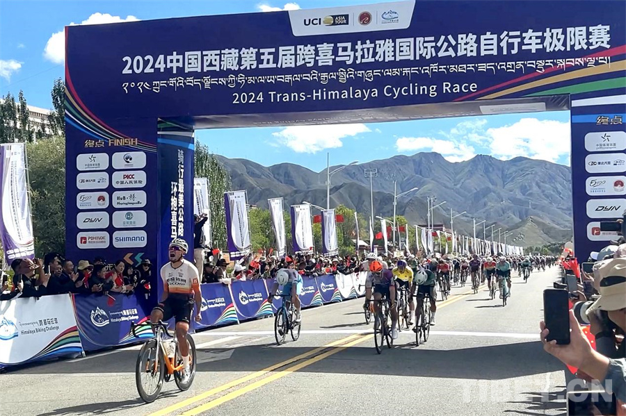 中國西藏網訊 8月25日中午11時30分,在日喀則賽段的終點,觀眾搖旗吶喊迎接激烈角逐90.06公里的自行車運動員們。隨著日喀則賽段順利完賽,2024中國西藏第五屆跨喜馬拉雅國際公路自行車極限賽圓滿結束。
