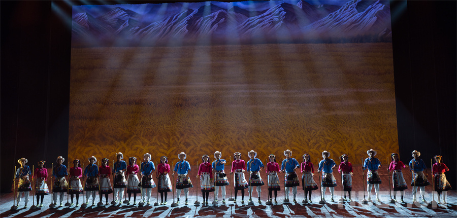 圖為“與時代同行 與人民同心”——新時代優秀舞臺藝術作品展演《天邊格桑花》的演出現場海報 攝影:王妍丹