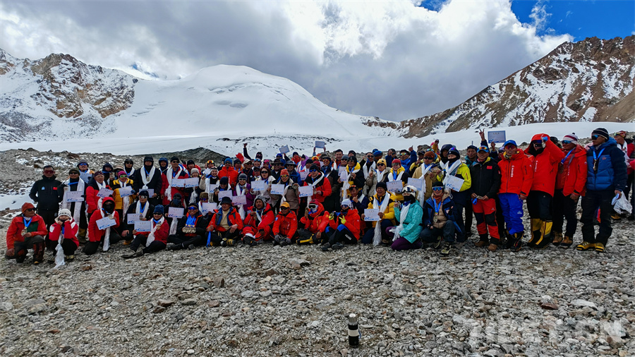 圖為2024第二十一屆中國西藏登山大會(huì)西藏民族大學(xué)部分師生登頂洛堆峰后合影留念,左四為楊建軍教授 攝影:馮重霖