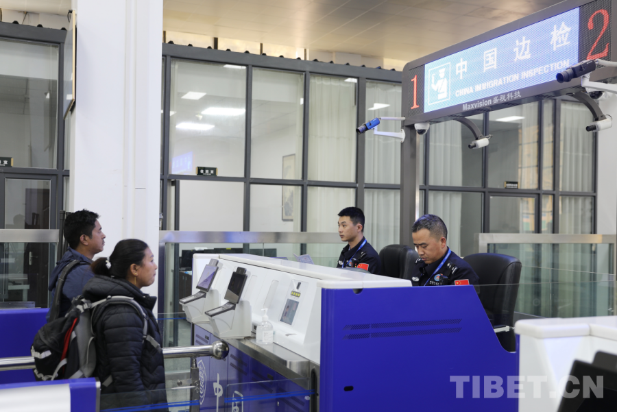 圖為10月29日,吉隆出入境邊防檢查站民警正在聯檢大廳為尼泊爾邊民辦理入境手續 攝影:肖富貴