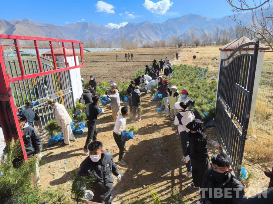 圖為張艾平帶領學生一起參與拉薩南北山綠化
