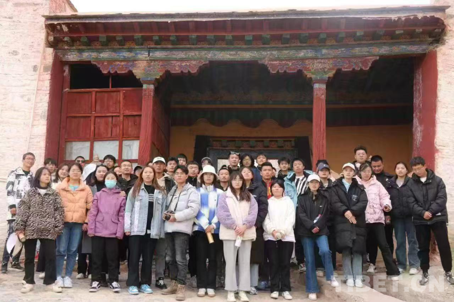 圖為張艾平帶領學生在西藏自治區日喀則市江孜縣帕拉莊園研學