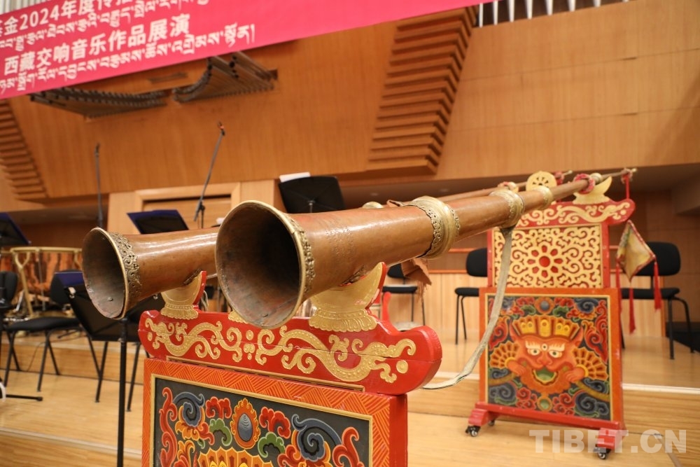 演出展示了合奏、協(xié)奏、獨(dú)奏等多種演奏形式,還加入了西藏傳統(tǒng)樂(lè)器演奏,如扎木念、藏大號(hào)等藏族傳統(tǒng)樂(lè)器,依托原創(chuàng)音樂(lè)、紅色音樂(lè),既保留了西藏音樂(lè)的風(fēng)格,又融入了現(xiàn)代音樂(lè)的元素,展現(xiàn)了西藏音樂(lè)的多元性和創(chuàng)新性以及交響樂(lè)的豐富表現(xiàn)力。