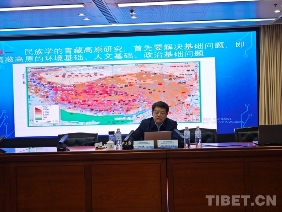 圖為國家民委原副主任、全國人大民族委員會原副主任、中央民族大學教授丹珠昂奔發言 攝影:蘭周加