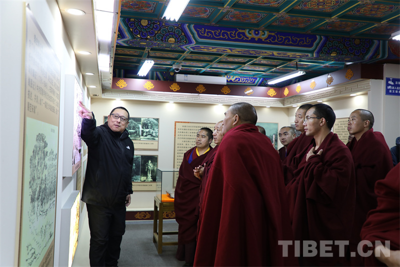 圖為西藏佛學院一行參觀西黃寺內展覽 攝影:王茜