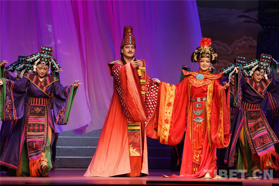 歷時三年打造,《金城公主》是一場視聽盛宴,更是一次民族文化自信的展示。雄渾的鼓聲,飛舞的袍袖,嘹亮的藏腔,藏語的念白……古老安多藏戲的魅力與風情淋漓盡致地展現在觀眾面前。在音樂、舞美、服裝的前期設計過程中,創作團隊研究了大量的唐卡、壁畫和相關文物,竭力還原古老時代的美。對此,仁青加表示:“我們有中華民族的文化自信作支撐,有藏族深厚的文化藝術底蘊作根基,這些都讓我們在創作這樣一部藏戲作品的過程中很有力量。”(中國西藏網 記者/蔣馨悅 蘇洋)