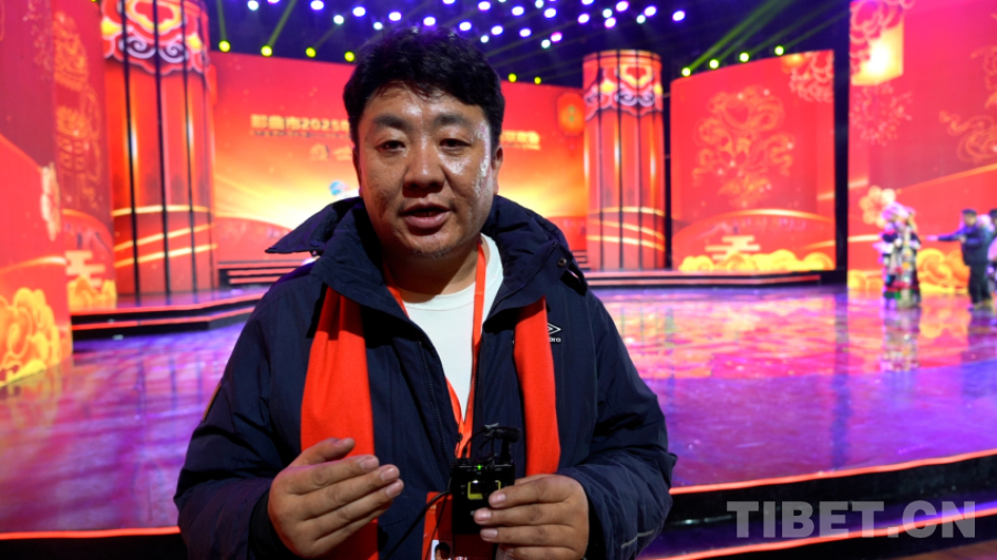 圖為那曲市2025年春節(jié)藏歷“木蛇”新年電視聯(lián)歡會總導(dǎo)演達瓦次仁接受本網(wǎng)記者采訪 攝影:趙振宇