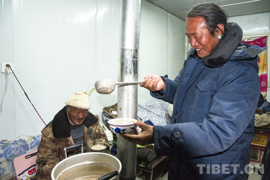 在日喀則市定日縣長所鄉茶江村受災群眾安置點,我們走進了扎西大哥的家里,品嘗一碗熱騰騰的‘古突’。