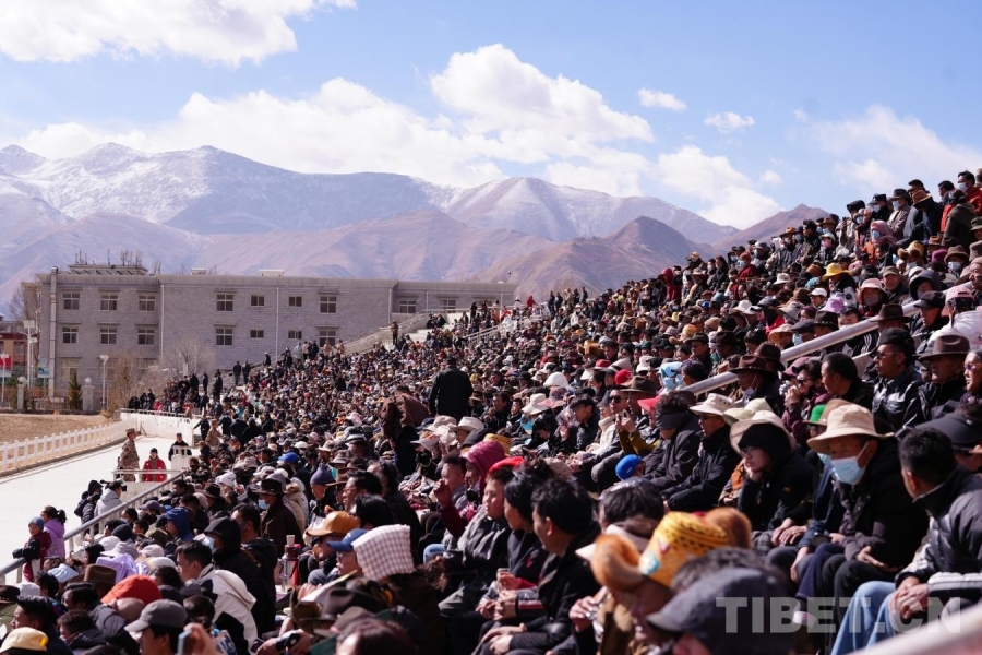 活動在莊嚴的國歌聲和歡快的民族傳統歌舞表演中正式拉開了帷幕。參加馬術表演的運動員們雙手高舉吉祥切瑪、青稞壺、木碗以及潔白的哈達和絢麗的花朵緩緩入場,向現場的來賓觀眾拜年。隨后,精彩的民族傳統馬術表演和民族賽馬穿插進行。