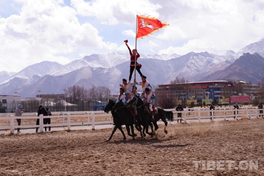 馬術表演現場,運動員們身穿民族服飾,在馬背上完成歌舞表演,以及劈斬跑道兩側障礙物、倒立、旋轉、射箭等各種高難度動作。賽馬現場,來自西藏各地的近20名選手躍馬揚鞭與駿馬默契配合,疾馳在賽道上。駿馬奔馳賽場,運動員動作敏捷,膽識過人,扣人心弦的單人單馬或多人多馬的比賽讓全場觀眾沸騰,尖叫聲、喝彩聲、掌聲連綿不斷。