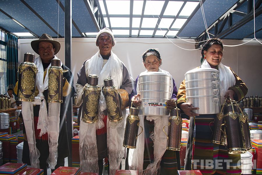 “因受地震的影響,今年的分紅儀式與以往相比簡單一些。我們村兩委經過商議,決定用今年的村集體收入為每戶購置多功能蒸鍋、銅壺等作為‘分紅’。一方面,因為大家現在都在安置板房里生活,這些物品對于村民來說實用性更強;另一方面,銅壺也有一定的裝飾作用,為村民簡單的板房內增添了一份像樣的‘家具’。”村黨支部書記旺加布說。