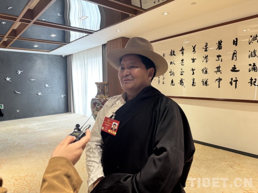 圖為兩會期間,扎西頓珠接受中國西藏網記者采訪
