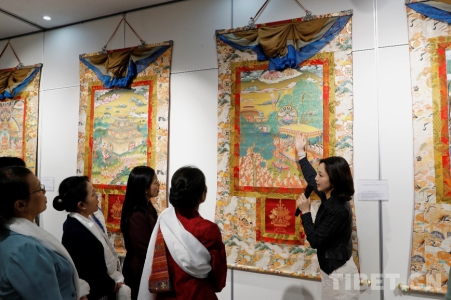 圖為“一眼千年——中國唐卡繪畫中的睦鄰美善”展覽現場 康卓供圖
