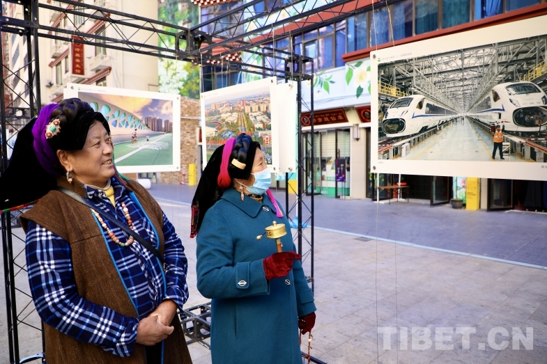 圖為當地群眾觀看攝影作品 攝影:龍真多吉