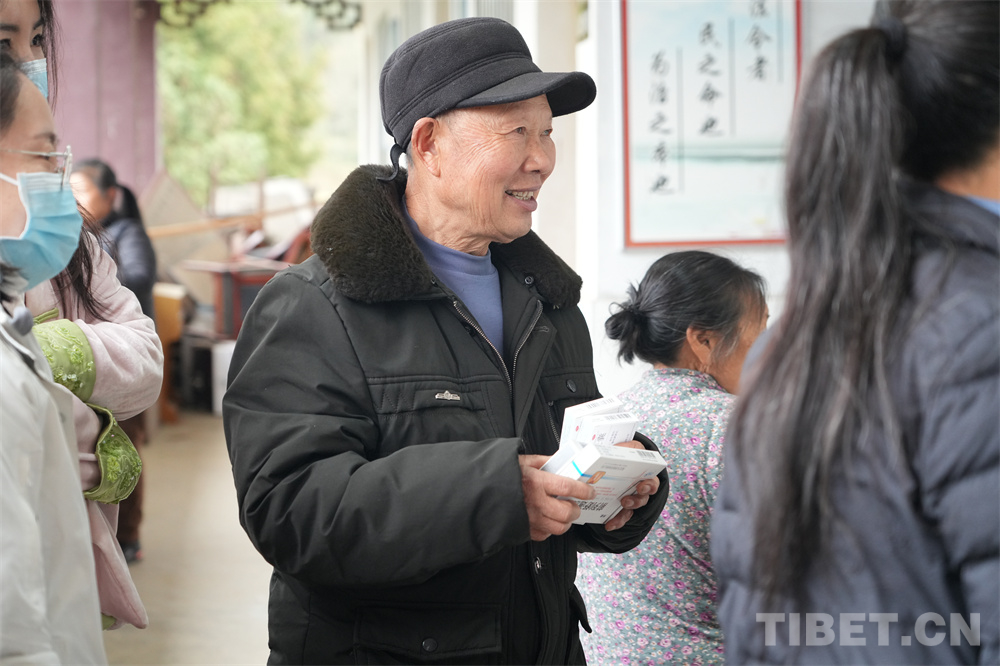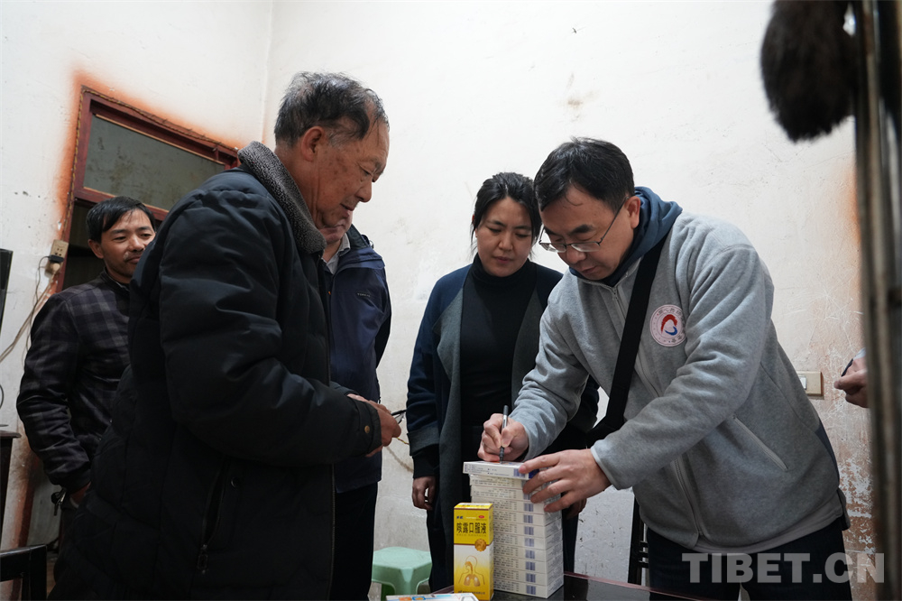 義診結(jié)束后,醫(yī)療志愿者們分組到村里入戶慰問(wèn)、送藥,并面對(duì)面指導(dǎo)村民如何用藥。(中國(guó)西藏網(wǎng) 記者/王茜 邊子捷)