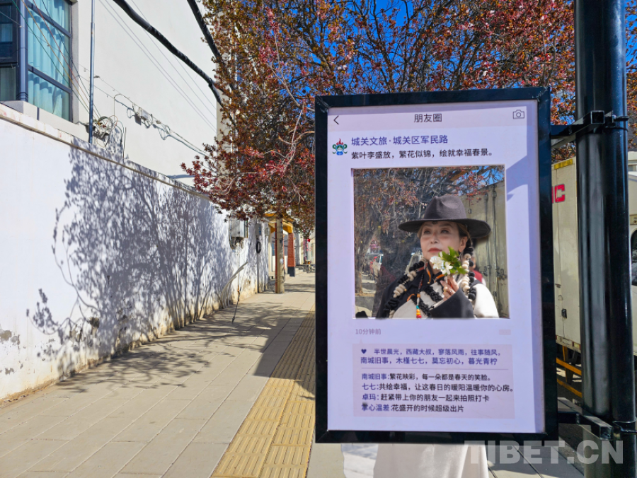 中國西藏網訊 隨著氣溫回升,拉薩城關區軍民路迎來爛漫春光。道路兩側的紫葉李競相綻放,與新添的創意藝術相框相互映襯,打造出一條美輪美奐的“春日花廊”,吸引眾多市民和游客前來打卡留念。