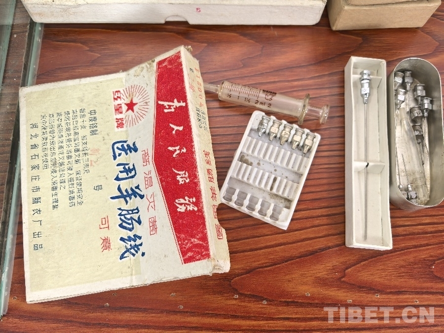 阿萬倉中心衛(wèi)生院的會議室里陳列著王萬青在當(dāng)時(shí)用過的醫(yī)藥箱與醫(yī)療器械,其軍才讓一一做了介紹。他說:“把這些設(shè)備、物品陳列起來,可以將以前的醫(yī)療條件、生活水平和現(xiàn)在進(jìn)行對比,要學(xué)習(xí)、傳承老一輩的做法、醫(yī)德與精神。”