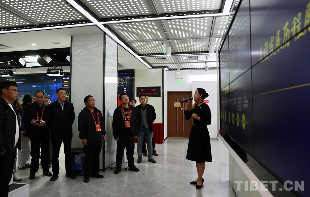 圖為西藏自治區民營企業家學習參觀團一行在美團綜合指揮中心聽取工作人員介紹 攝影:劉莉