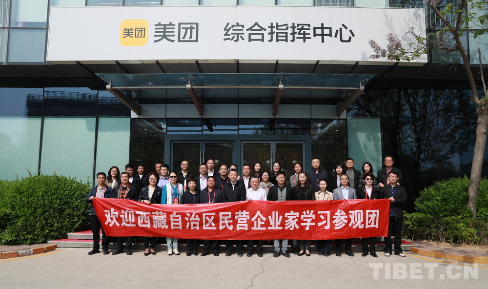 圖為西藏自治區民營企業家學習參觀團一行與美團工作人員合影 攝影:劉莉